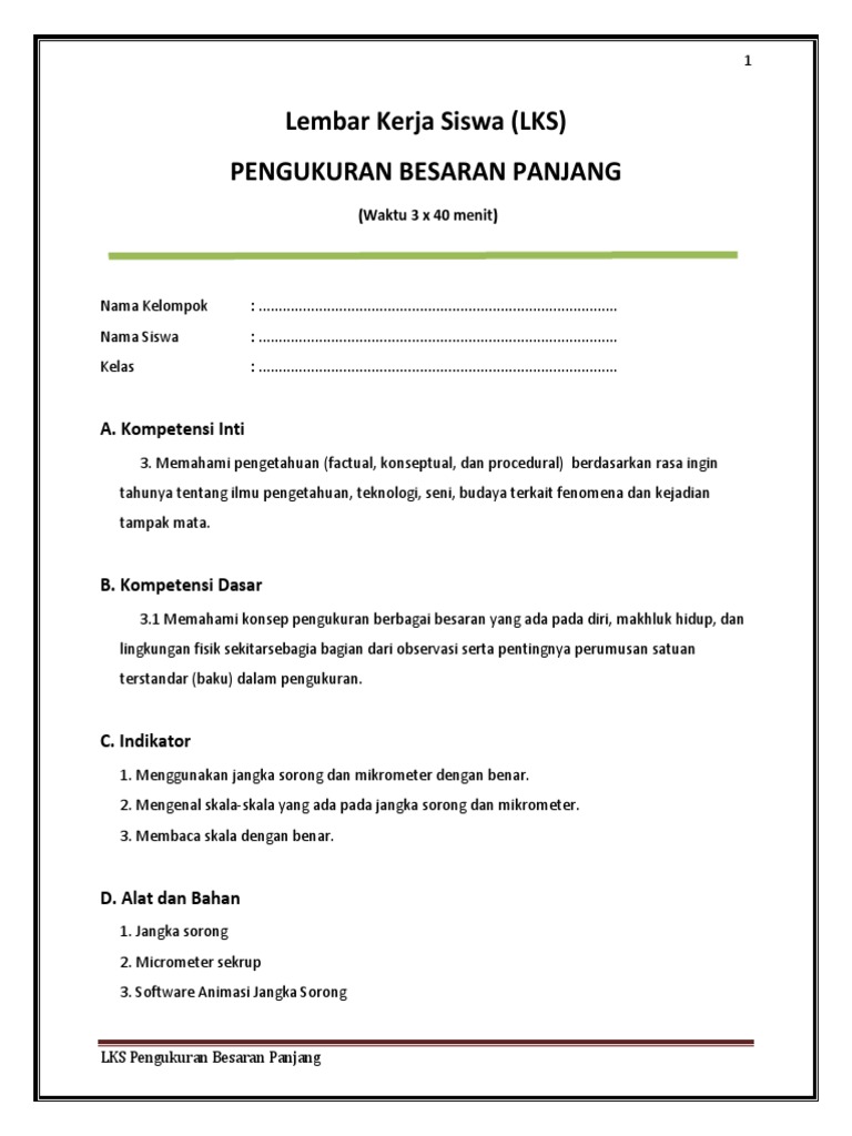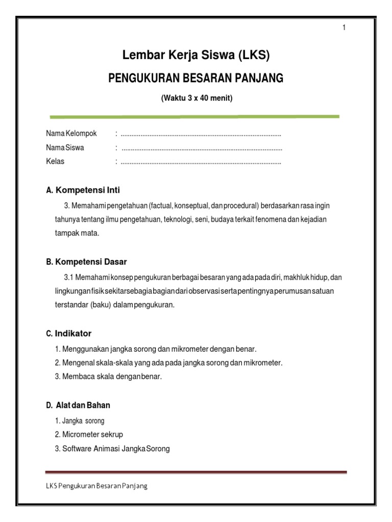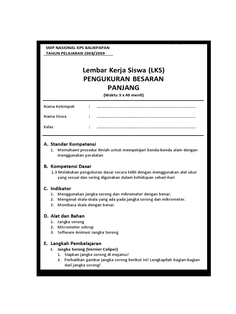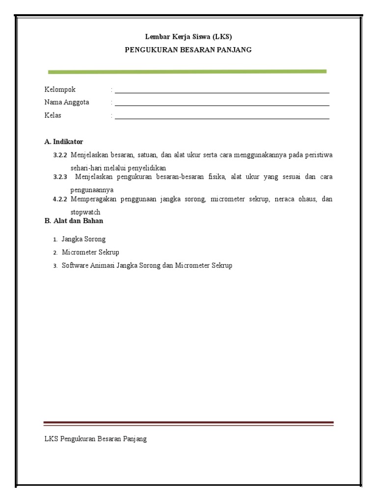 Lembar Kerja Siswa (LKS) PENGUKURAN BESARAN PANJANG - [PDF Document]
