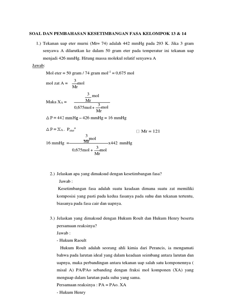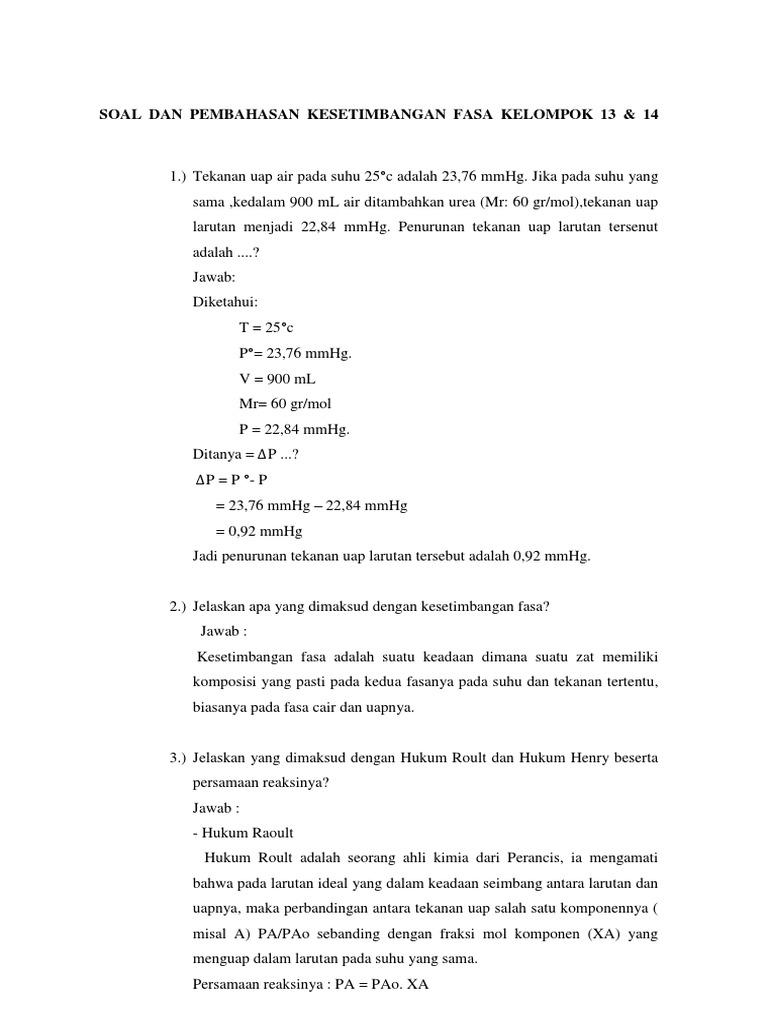 Soal Dan Pembahasan Kesetimbangan Fasa Kelompok 13 & 14