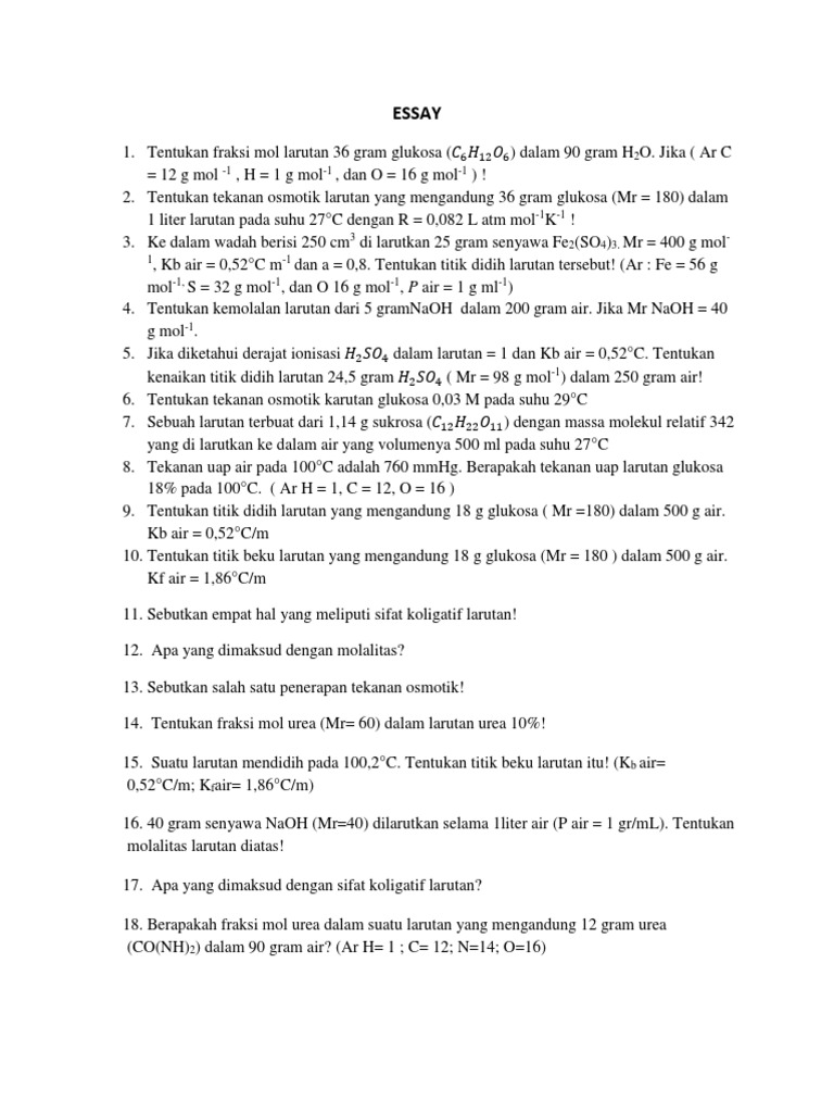 Contoh Soal Kimia Molaritas Molalitas Dan Fraksi Mol Dunia Sosial - Cute766