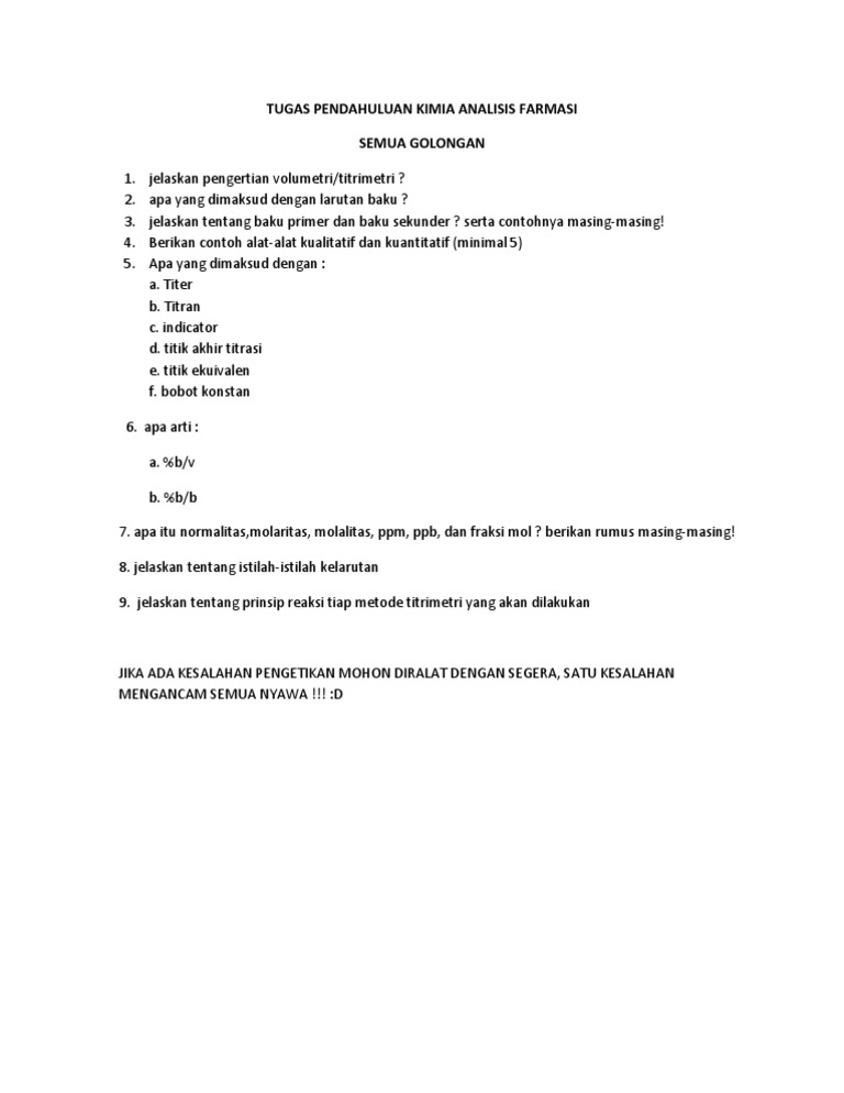 Tugas Pendahuluan Kimia Analisis Farmasi