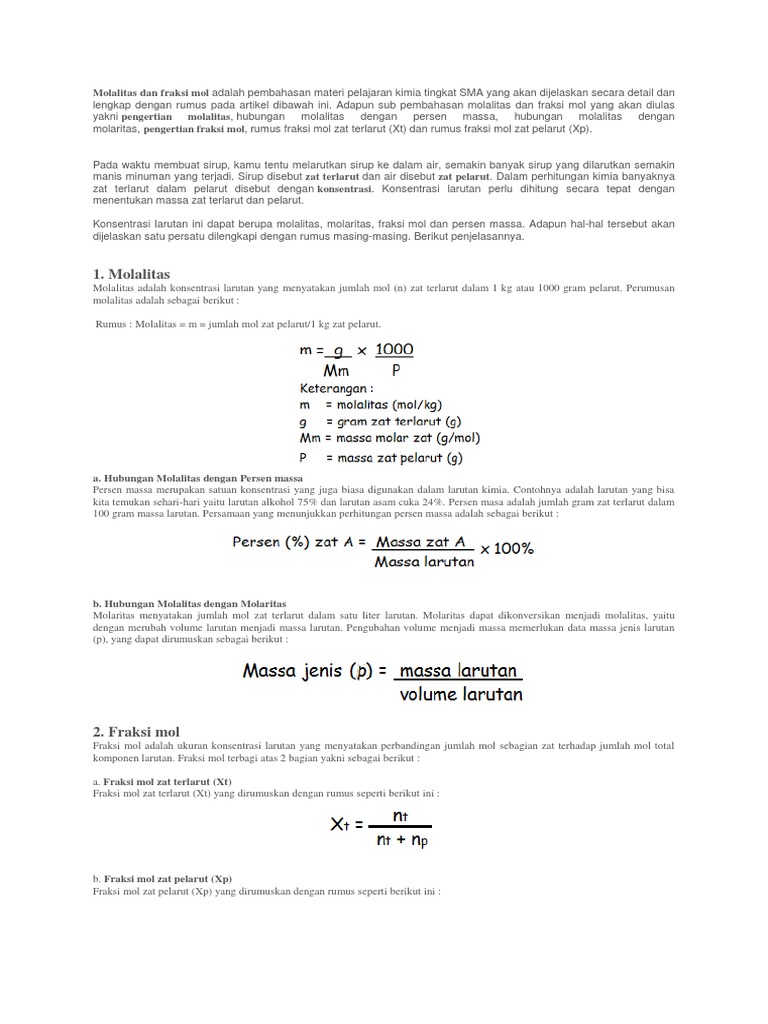 Kemolalan, Kemolaran Dan Fraksi Mol | Siswapedia