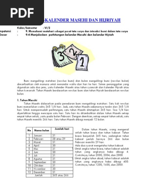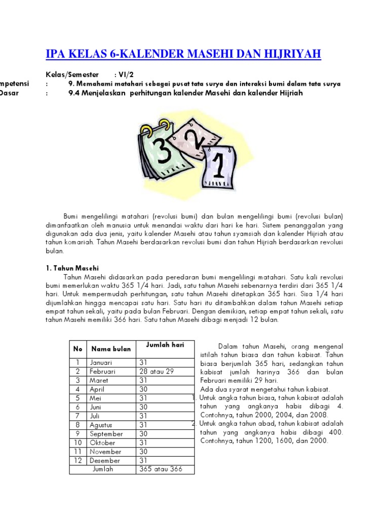 Kalender Masehi dan Kalender Hijriah - SainsPedia