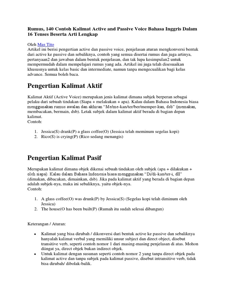 Materi Kalimat Aktif dan Pasif Lengkap (Pengetahuan B.Indonesia) - Pengetahuanumum21