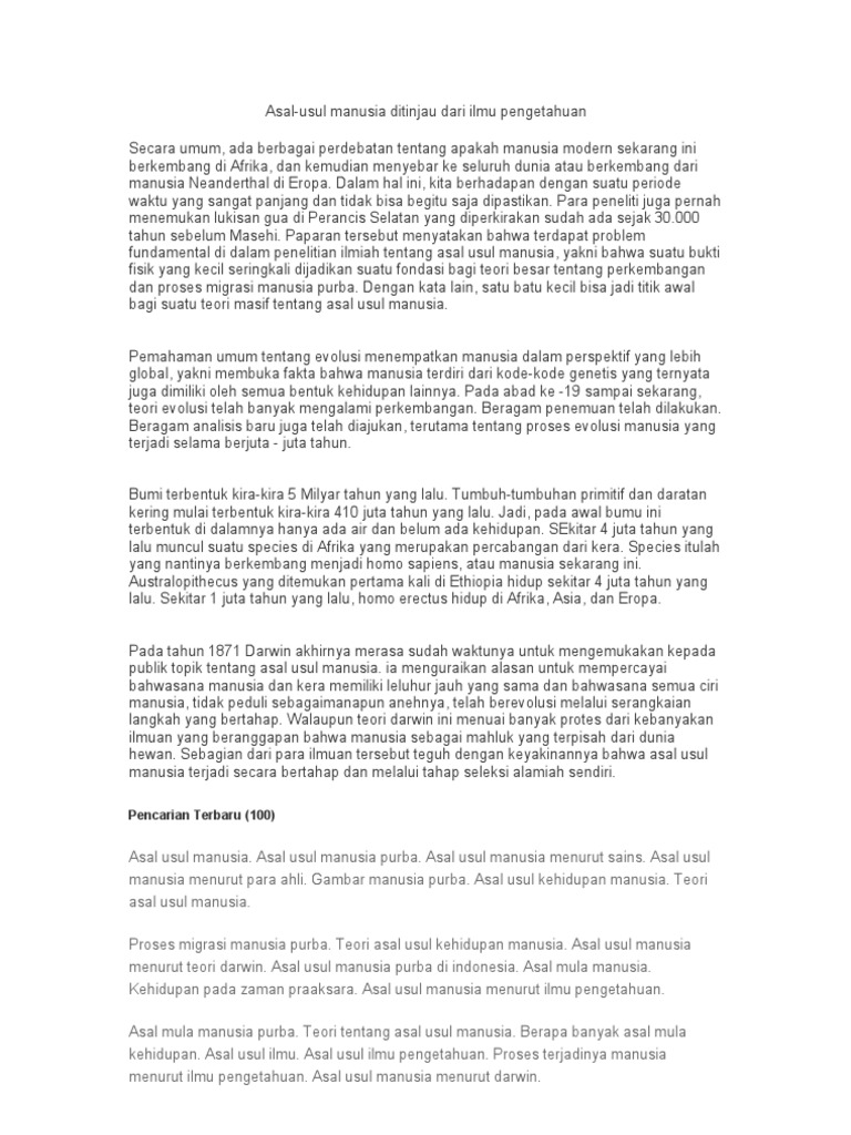 DOC) Asal-usul kejadian manusia menurut sains | anjay folwo …