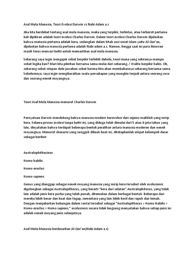 PDF) Asal Usul Kejadian Manusia Menurut Teori Darwin dan AlQuran