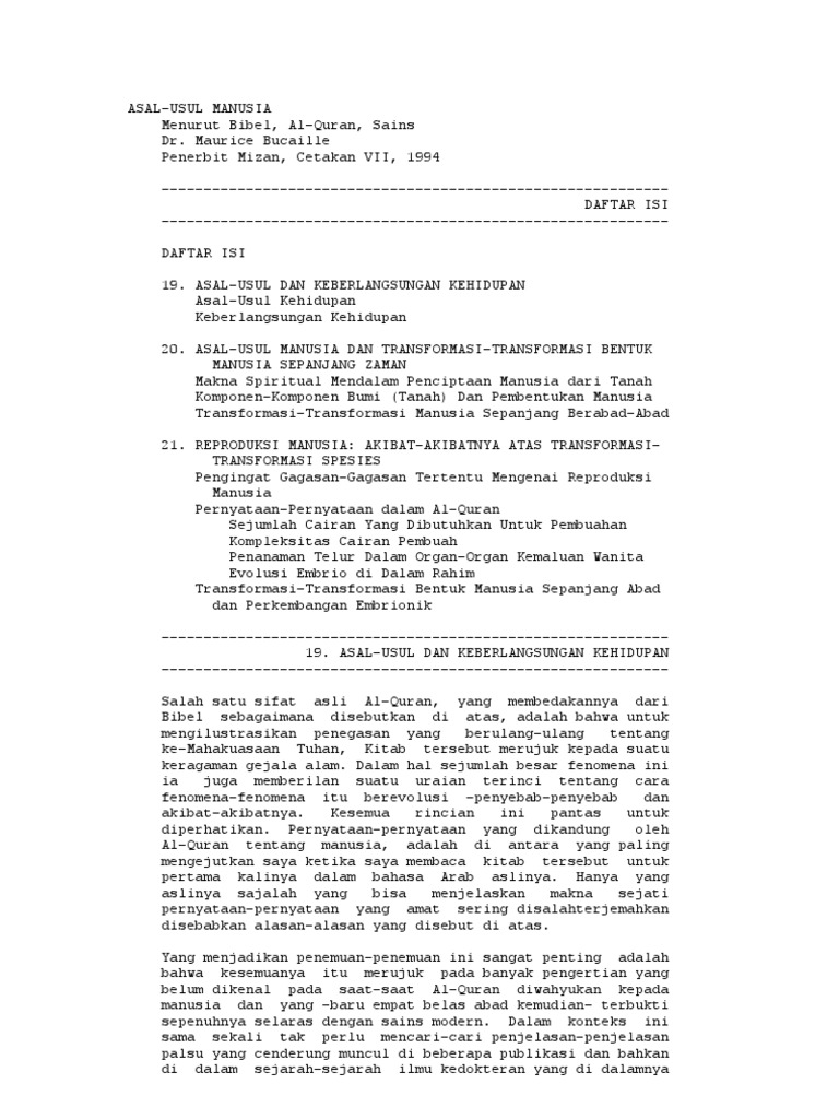 Jual ASAL USUL MANUSIA MENURUT BIBEL AL QURAN SAINS - DR. MAURICE …