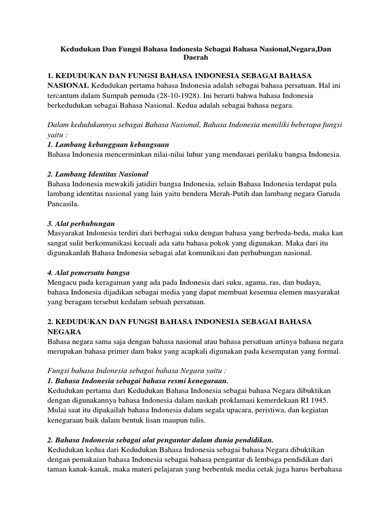 Kedudukan dan fungsi bahasa indonesia sebagai bahasa nasional dan bah…