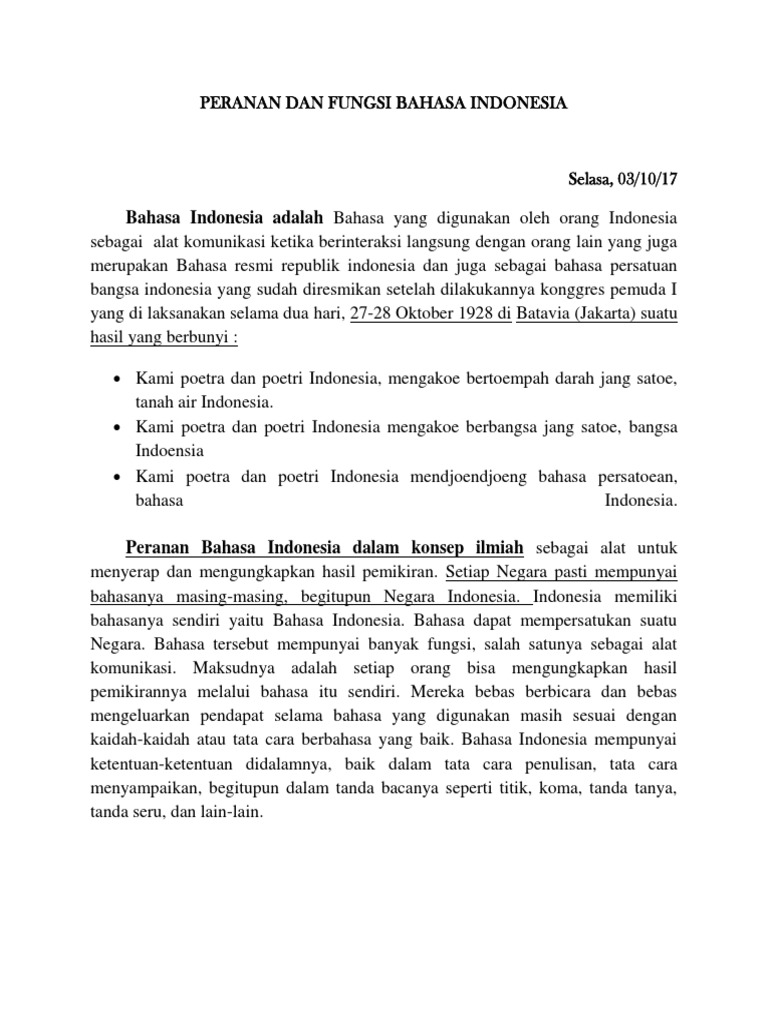 PERANAN DAN FUNGSI BAHASA INDONESIA - ppt download