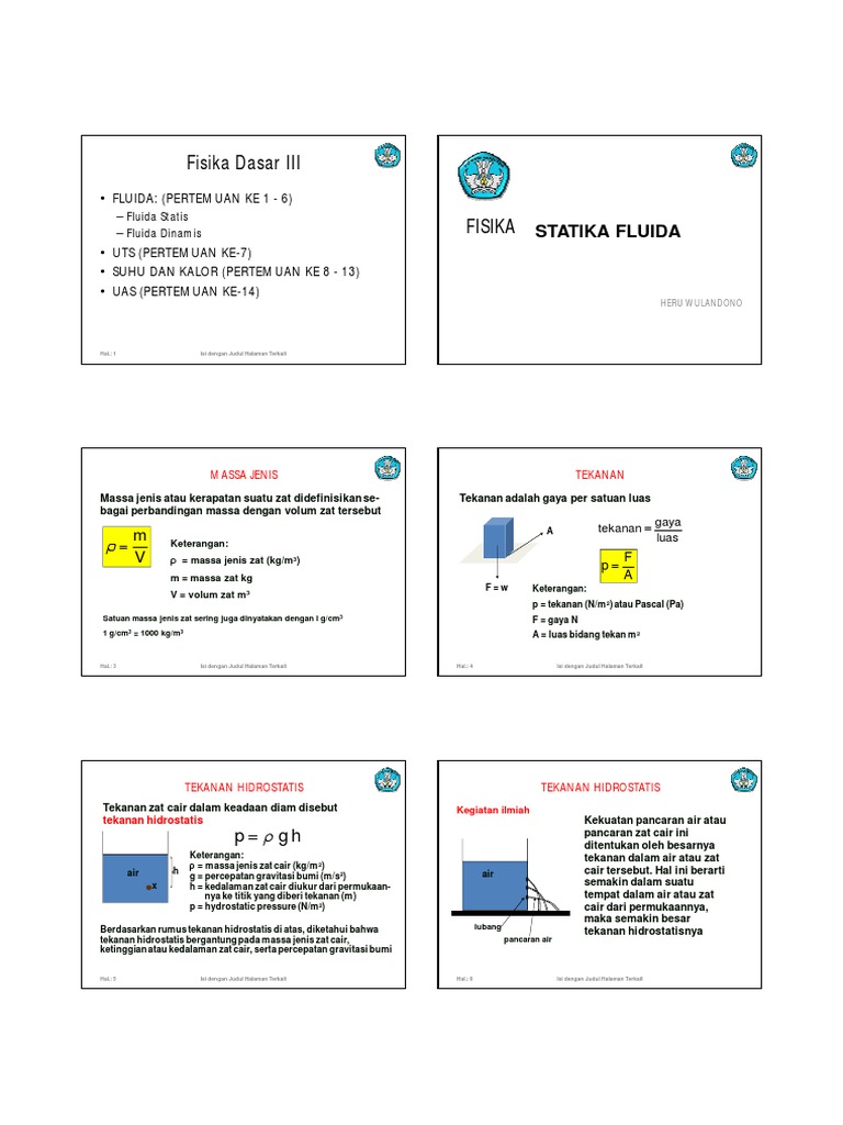 MATERI FLUIDA STATIS (TEKANAN HIDROSTATIS, HUKUM PASCAL, DAN HUKUM AR…