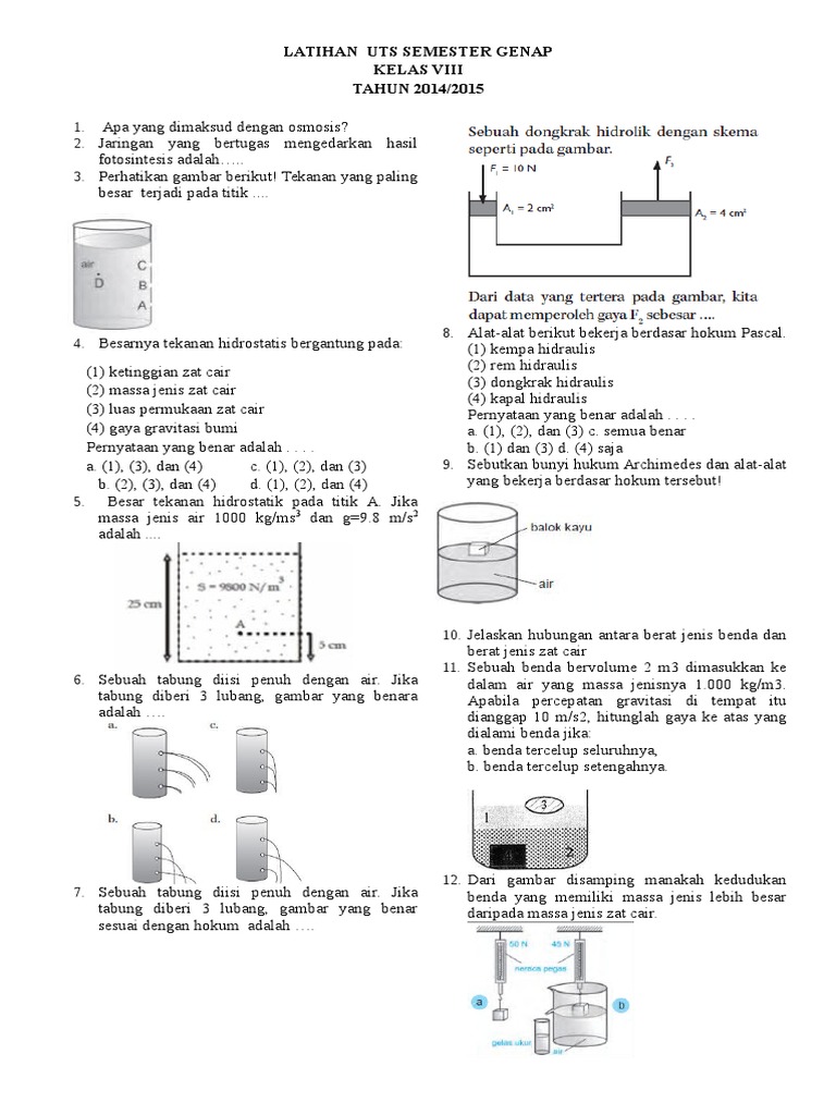 10 Contoh Soal Tekanan Hidrostatis SMP kelas 8 beserta …