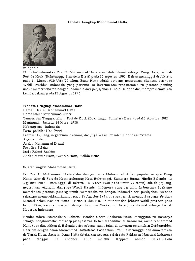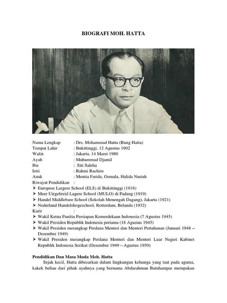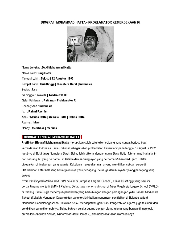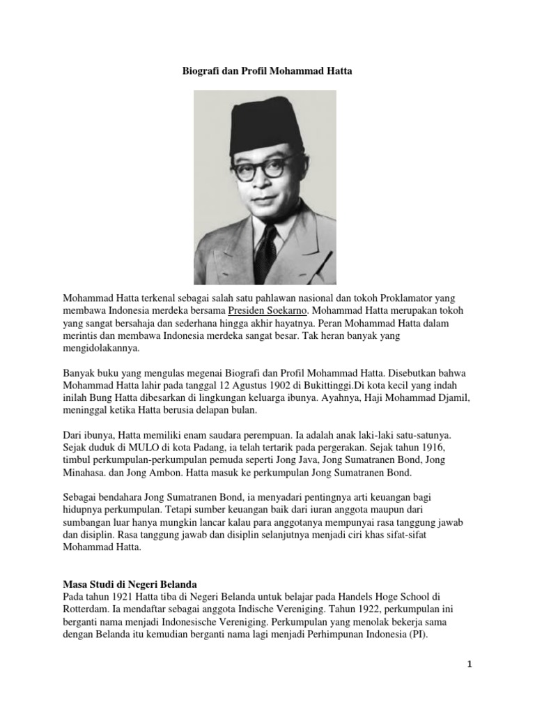 Biografi Dan Profil Lengkap Mohammad Hatta Tokoh Proklamator Indonesia.docx - Biografi Dan Profil Lengkap Mohammad Hatta Tokoh Proklamator Indonesia | Course Hero