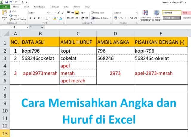 Cara Memisahkan Angka dan Huruf di Excel