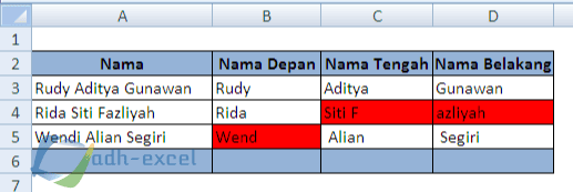 Cara Mengambil Nama Depan dan Nama Belakang Dengan Menggunakan Rumus Dalam Excel - Adhe-Pradiptha