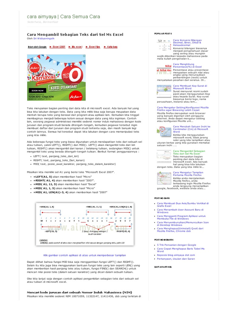 Cara Mengambil Sebagian Teks dari Sel Ms Excel | cara aimyaya | Cara Semua Cara