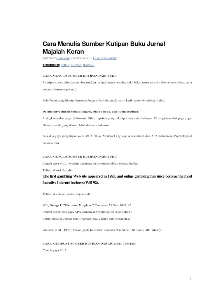 Cara Menulis Sumber Kutipan Buku Jurnal Majalah Koran