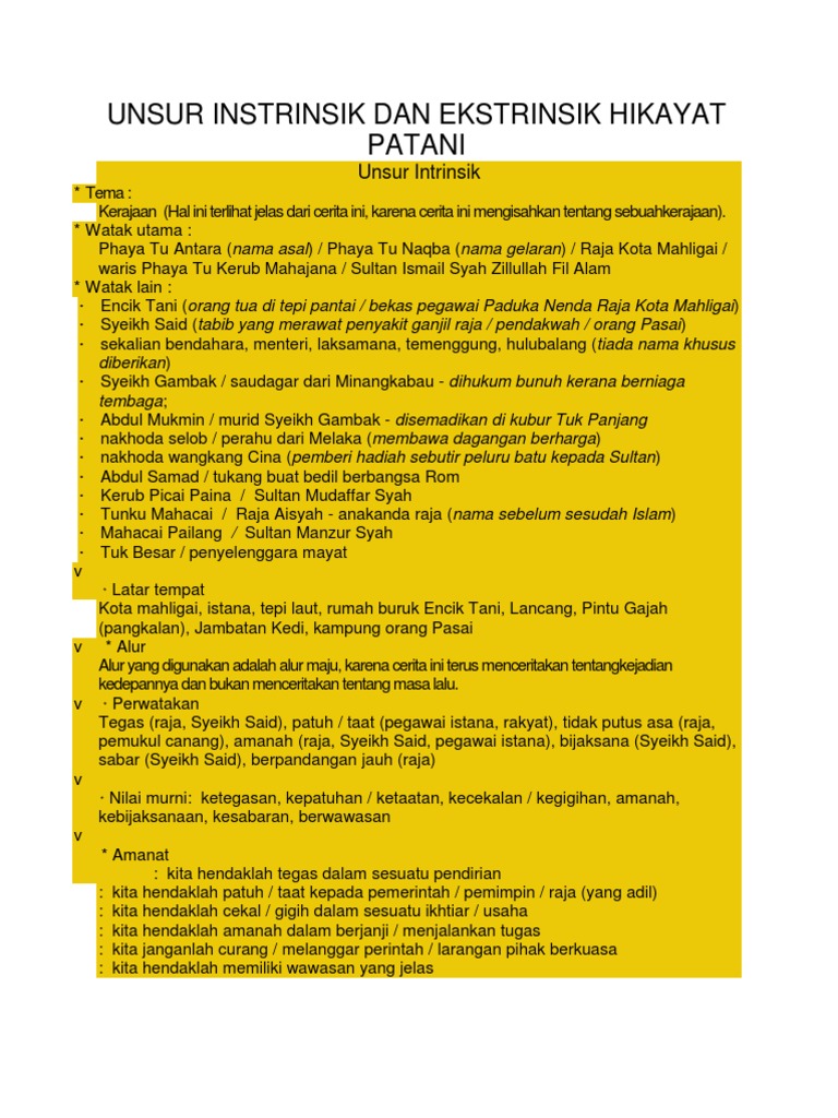 Unsur Instrinsik Dan Ekstrinsik Hikayat Patani