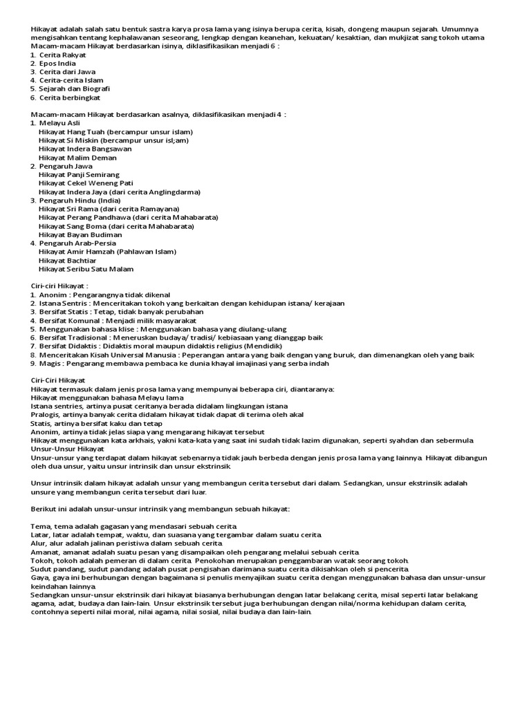 19 Hikayat Beserta Unsur Intrinsik Dan Ekstrinsik