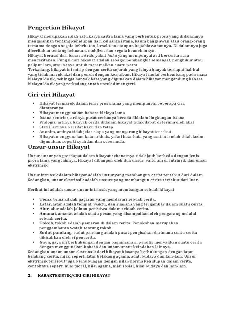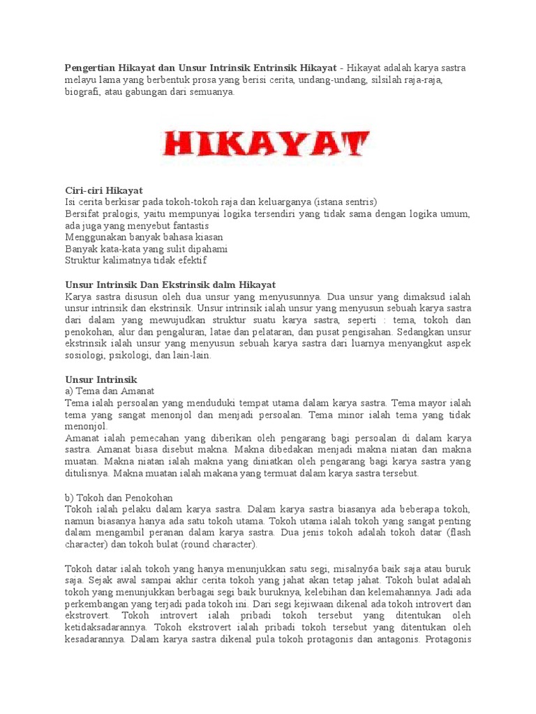 TEKS HIKAYAT; Pengertian, Fungsi, Ciri, Unsur Ekstrinsik dan …