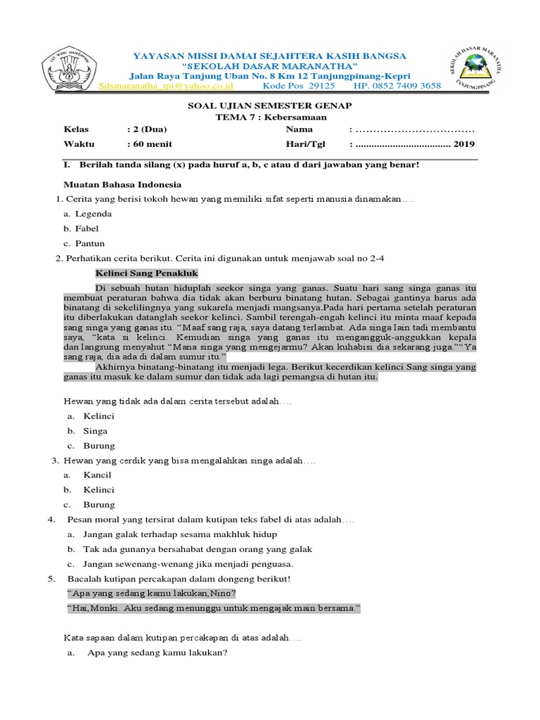 SOAL TEMATIK KELAS 4 TEMA 8 SUBTEMA 1 DAN JAWABAN - Kurikulum …
