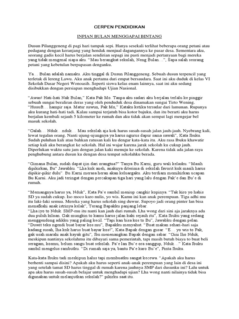 Contoh Cerpen Singkat Pendidikan Beserta Pengarangnya | Kumpulan …