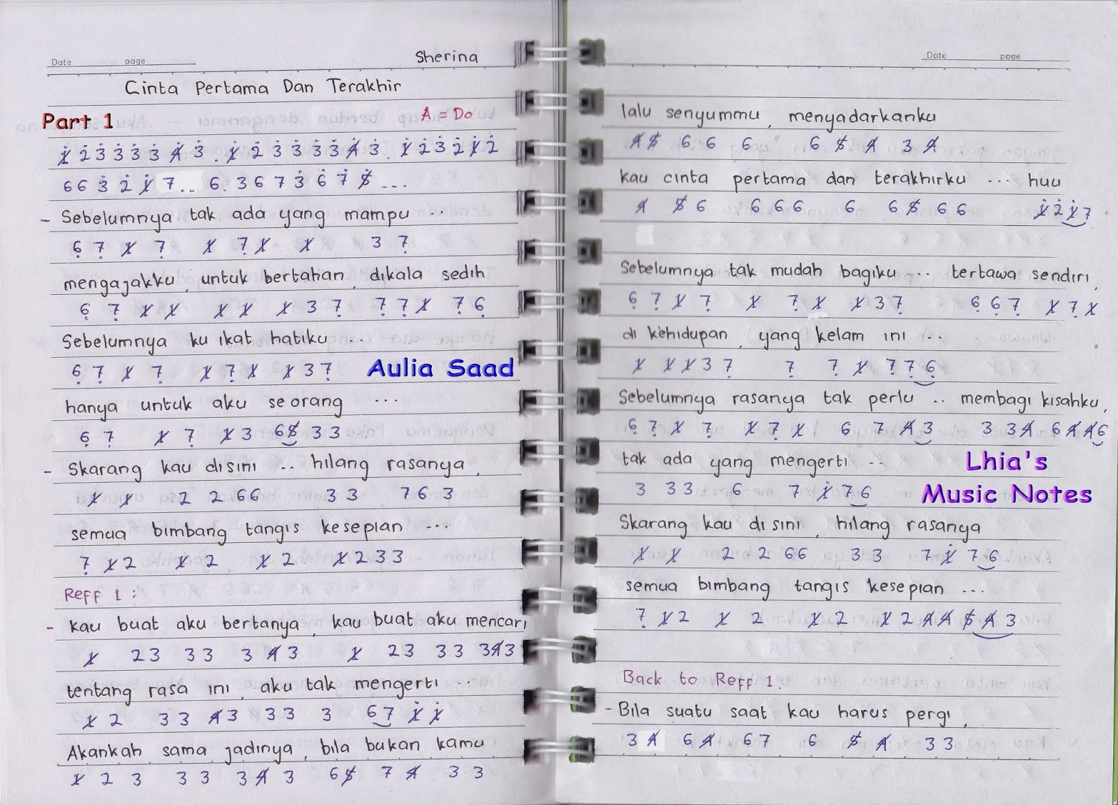 Not Angka : Sherina – Cinta Pertama Dan Terakhir | Lhia’s Music Notes