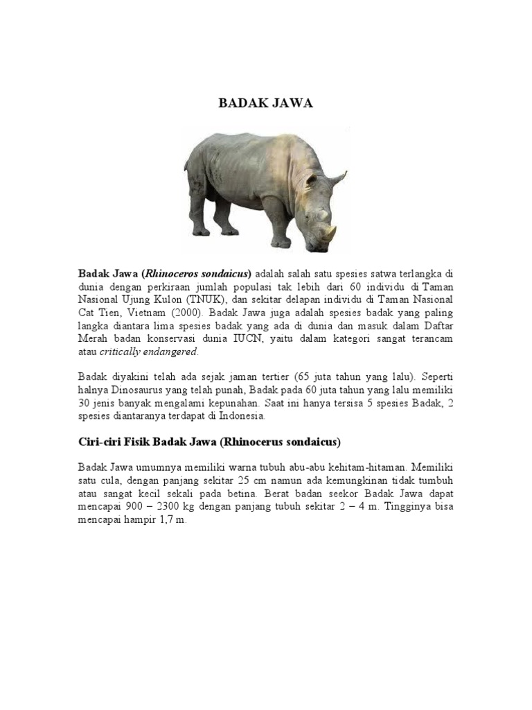 Dekriptif Teks badak/Rhinoceros sondaicus,, Full Deskripsi Badak …