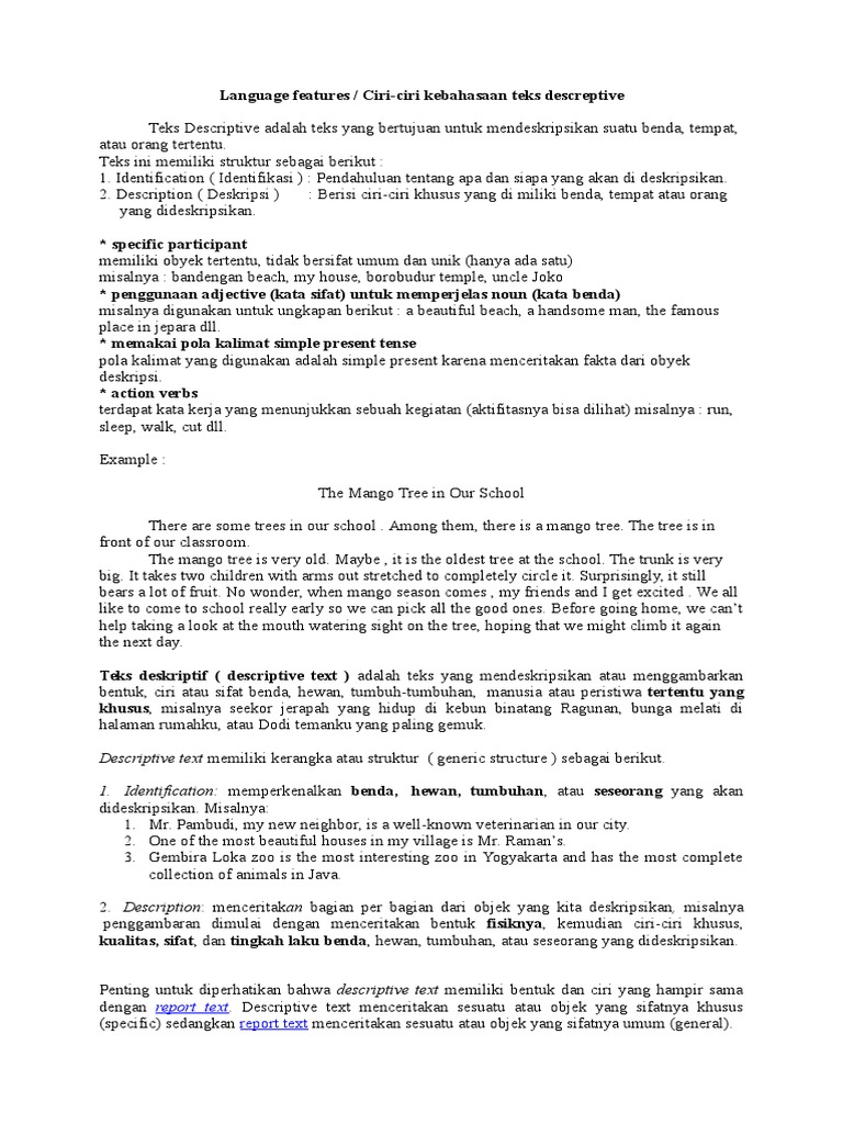 Pengertian Unsur Kebahasaan dan Contoh Descriptive Text - Berbagi …