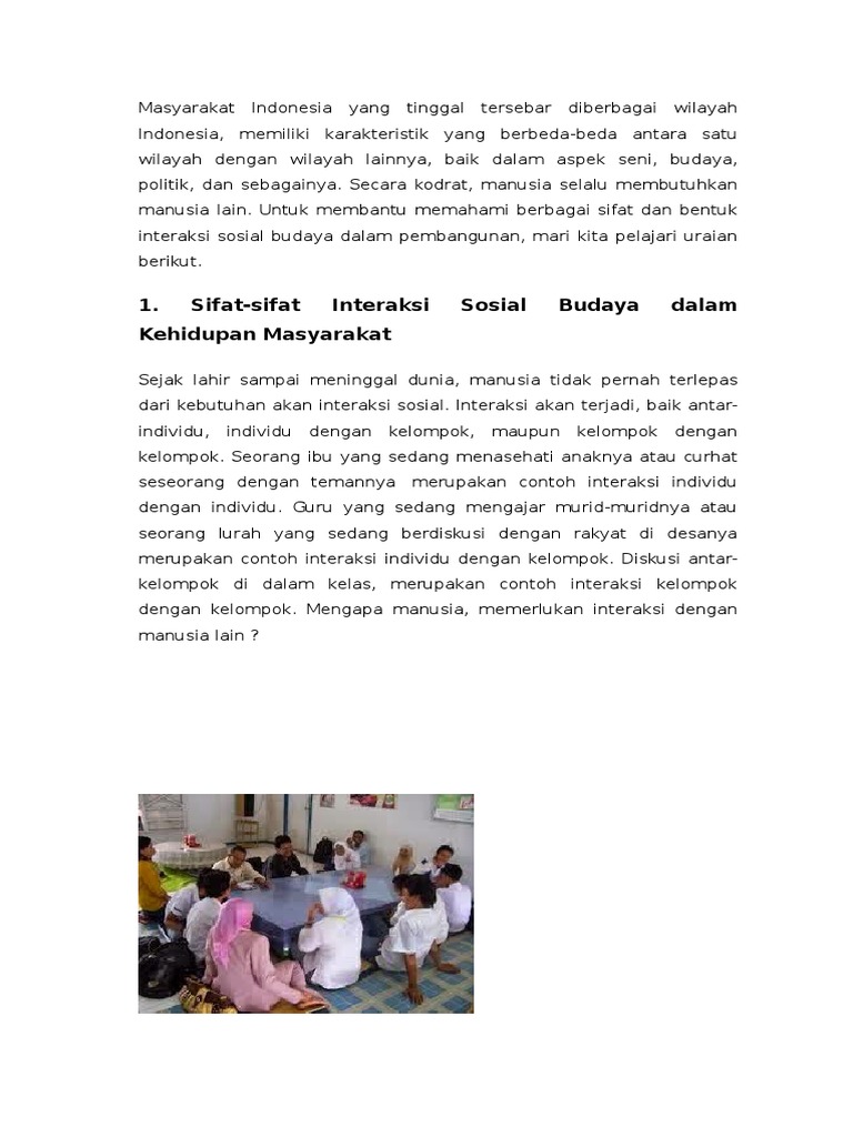 Sifat dan Bentuk Interaksi sosial budaya dalam pembangunan nasional