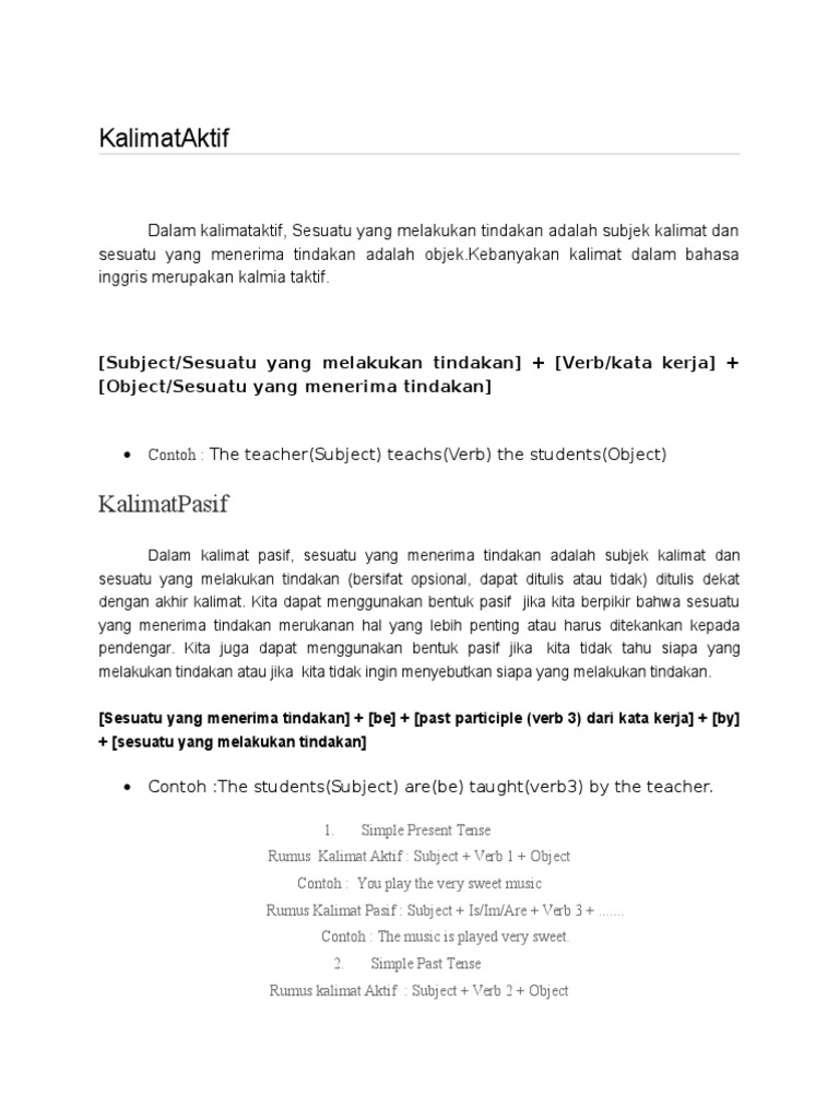 Contoh Kalimat Aktif dan Pasif Dalam Bentuk Simple Present Tense …
