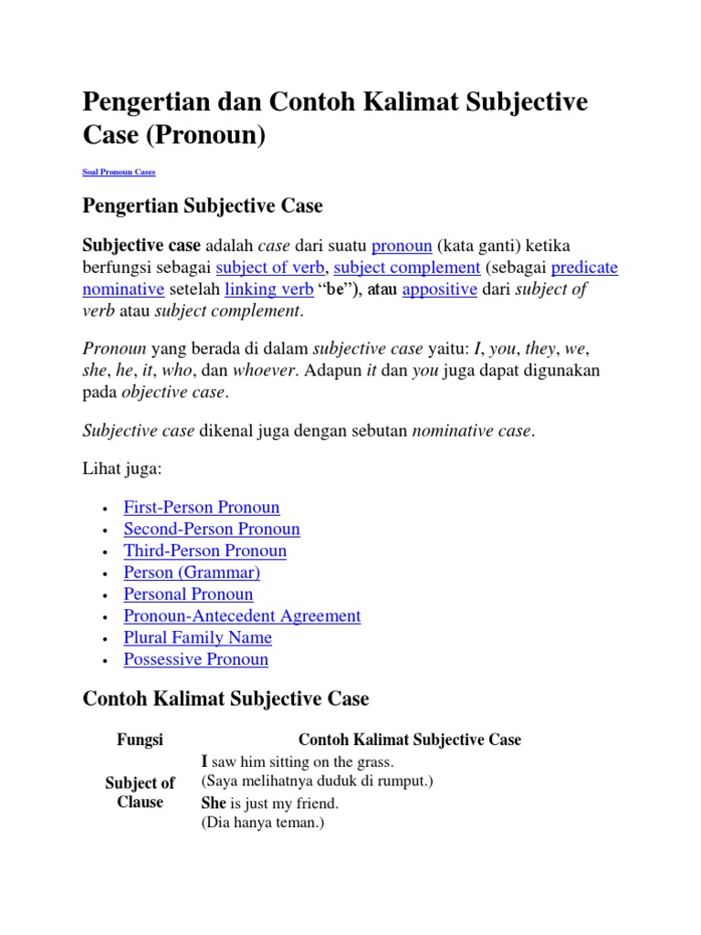Pengertian Dan Contoh Kalimat Subjective Case