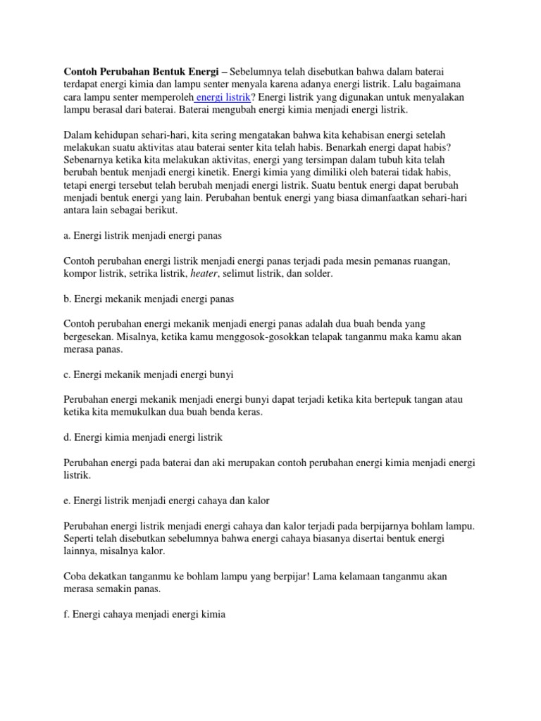 Contoh Perubahan Energi Dalam Kehidupan Sehari Hari - Cute766