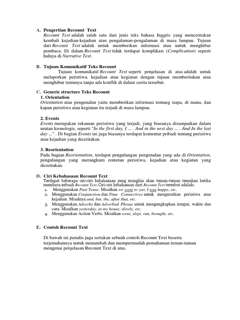 DOC) RECOUNT TEXT Pengertian Recount Text Bahasa Inggris Generic …