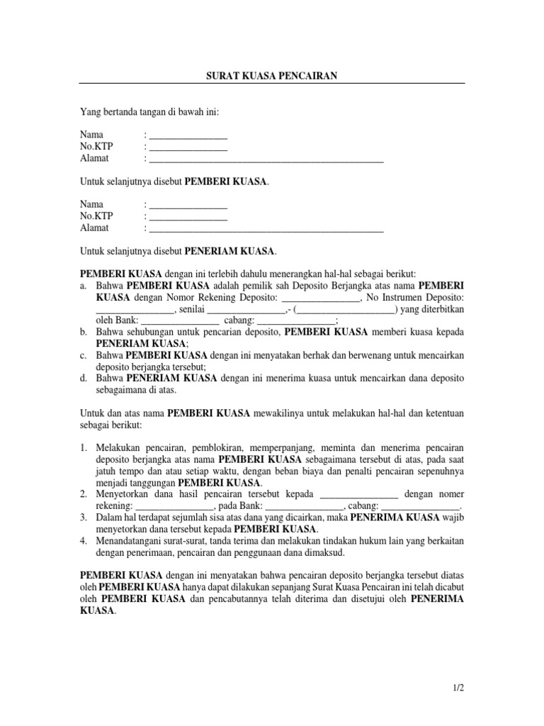 Contoh Surat Kuasa Pengambilan Deposito Di Bank - Contoh Surat …