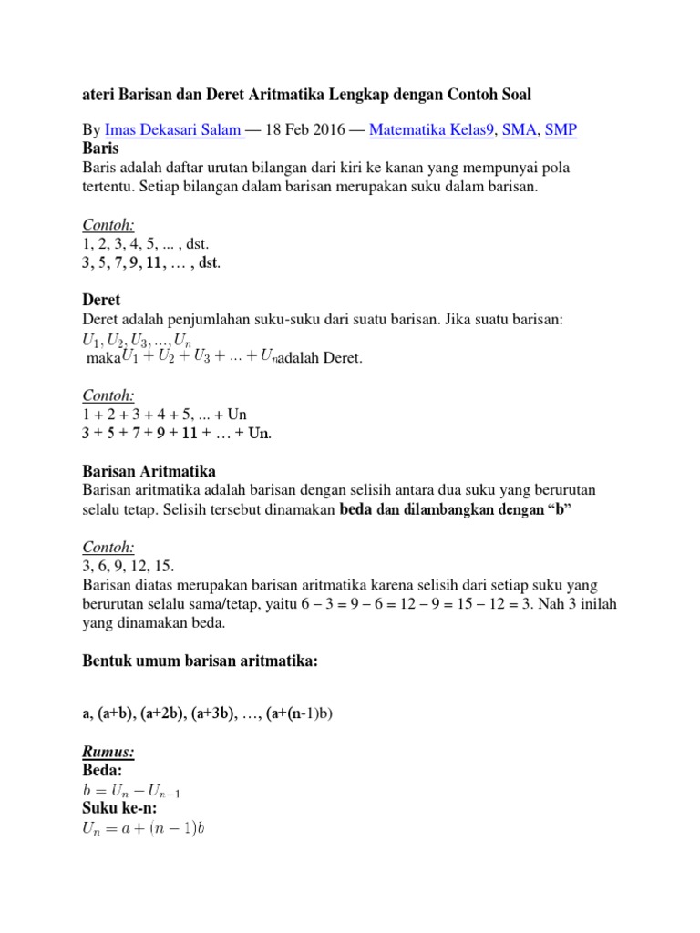 Contoh Soal Deret Aritmatika | Contoh Soal Dan Materi Pelajaran 3