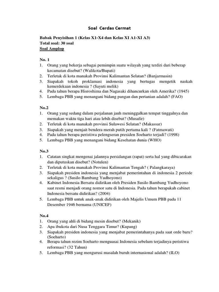 Contoh Soal Cerdas Cermat Tingkat Sma Beserta Jawabannya - Dapatkan Contoh
