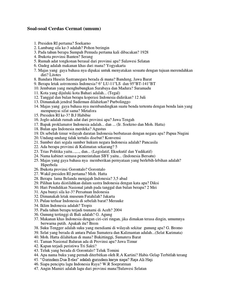 Contoh Soal Cerdas Cermat Smp Pengetahuan Umum - Dapatkan Contoh