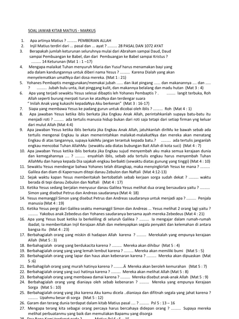 Contoh Soal Cerdas Cermat Alkitab Anak Sekolah Minggu - Contoh Soal Terbaru