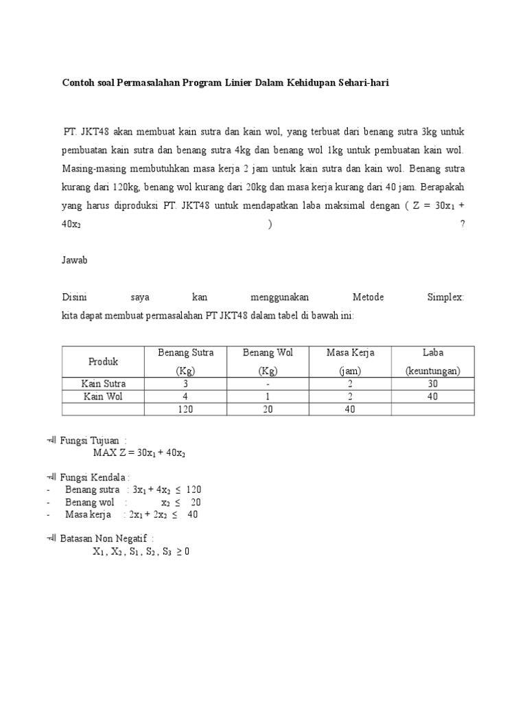 Contoh Soal Cerita Program Linear Metode Simpleks - Contoh Soal …