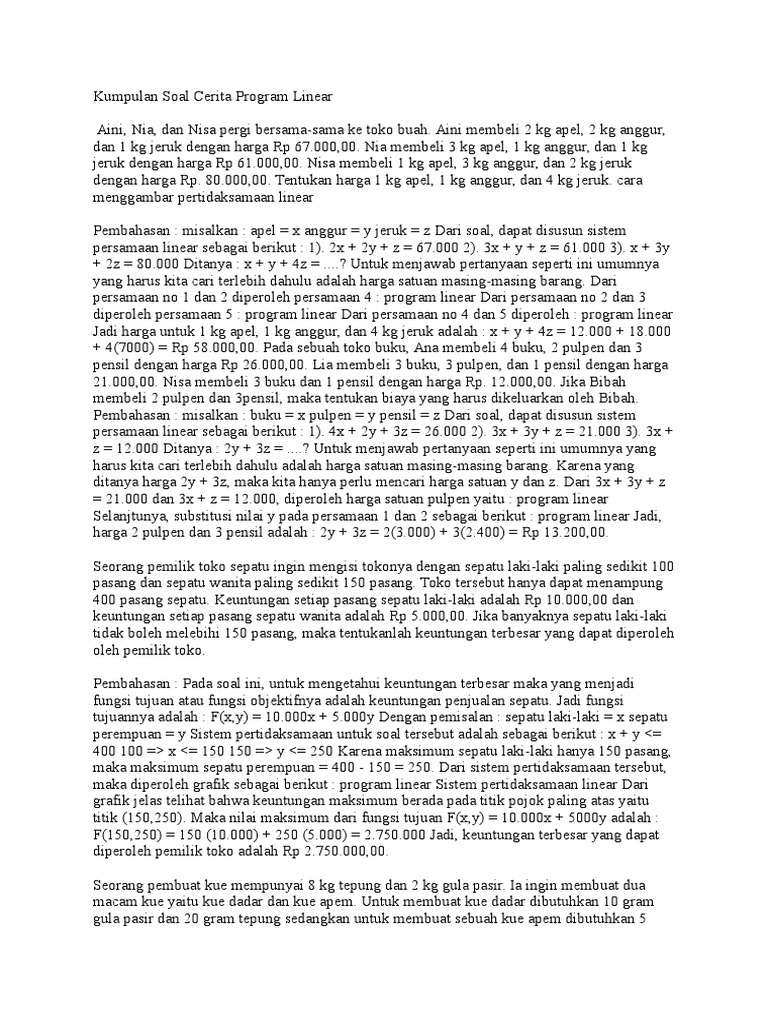 Download PDF - Contoh Soal Cerita Program Linear Dan Pembahasan …