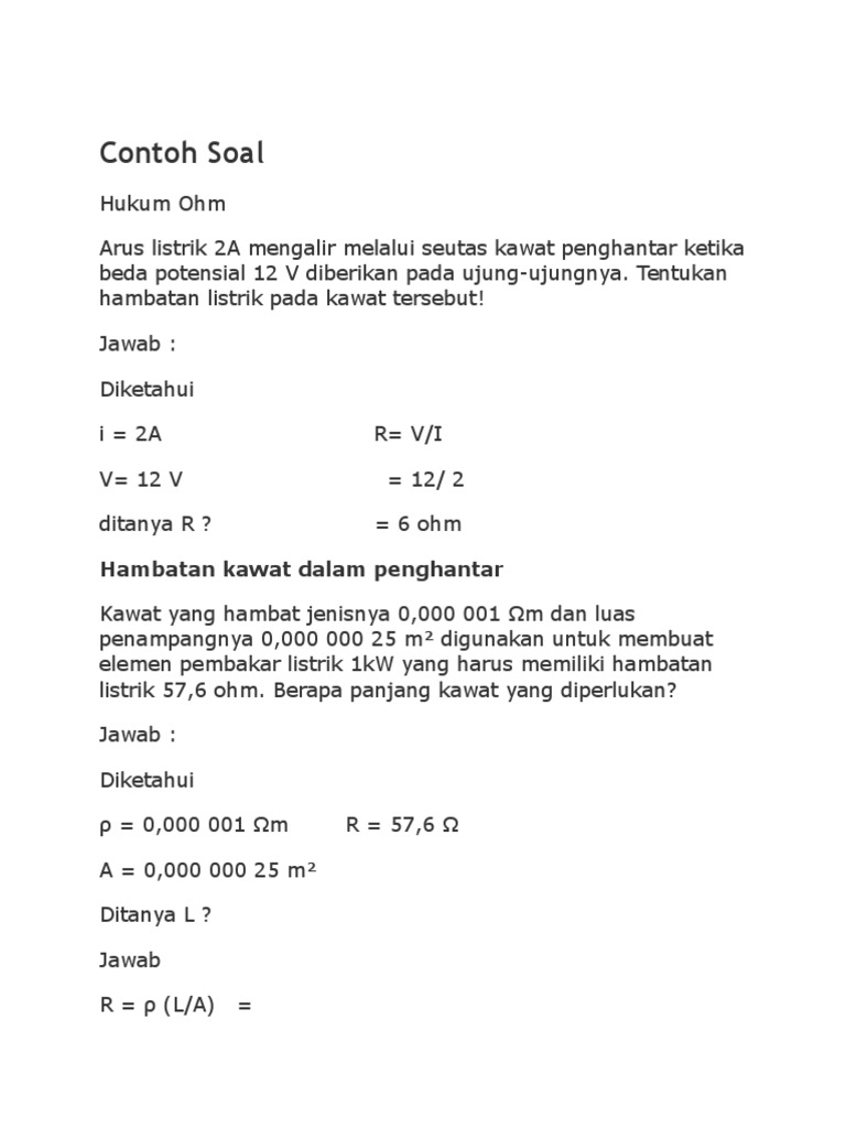 Contoh Soal Hukum Ohm Kelas 9 | Kumpulan Soal pelajaran 5