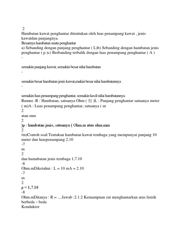 Hambatan Pada Suatu Kawat Penghantar | sch. paperplane