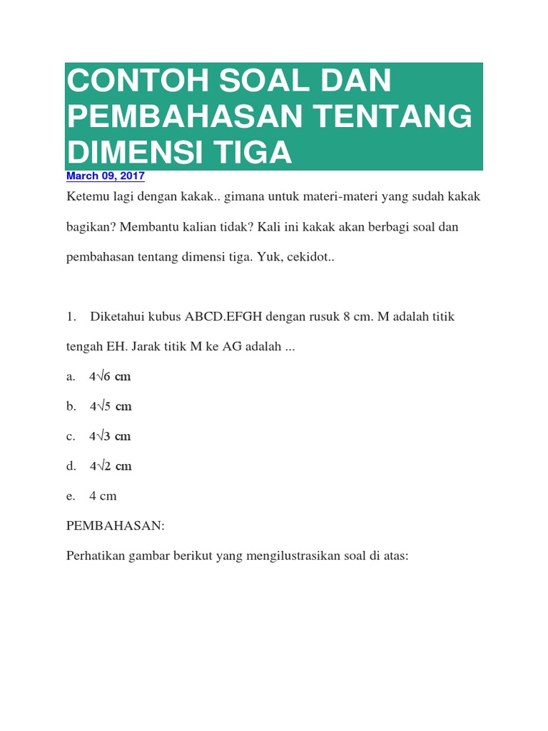 Contoh Soal Dan Pembahasan Tentang Dimen