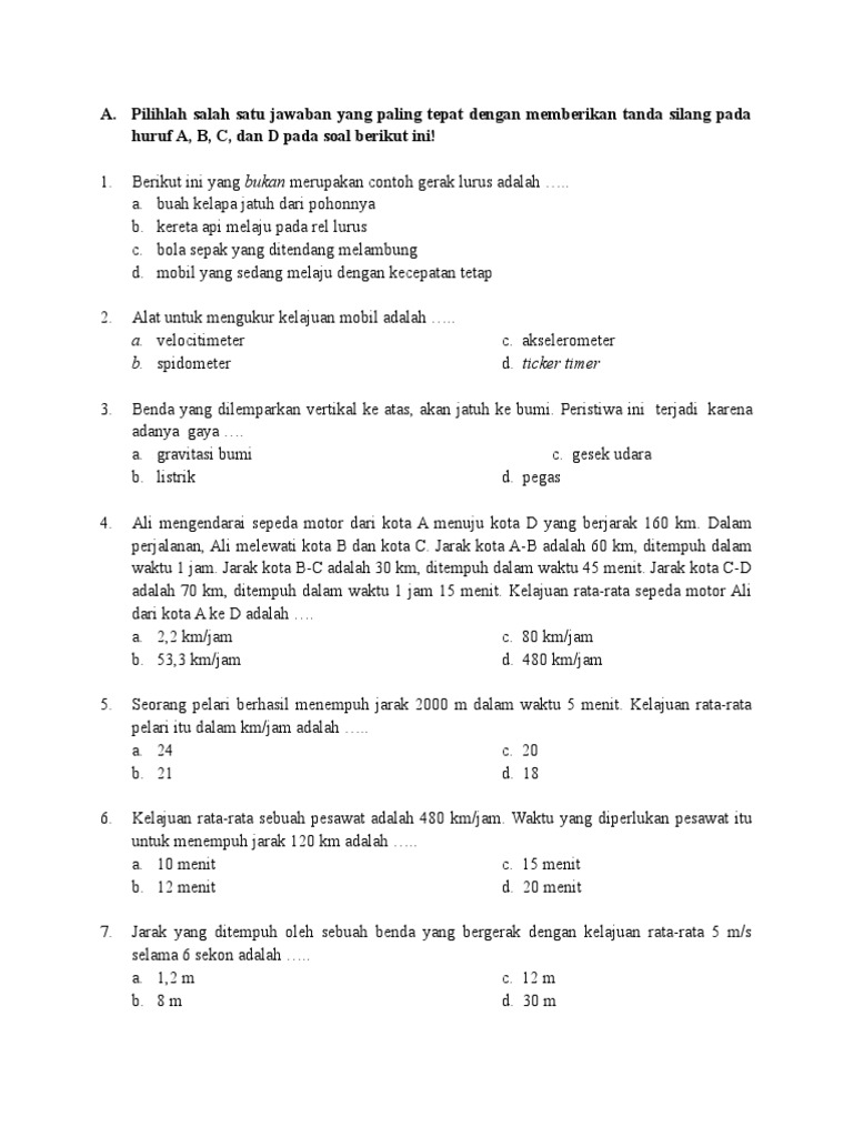 Contoh Soal Kelajuan Dan Kecepatan Kelas 8