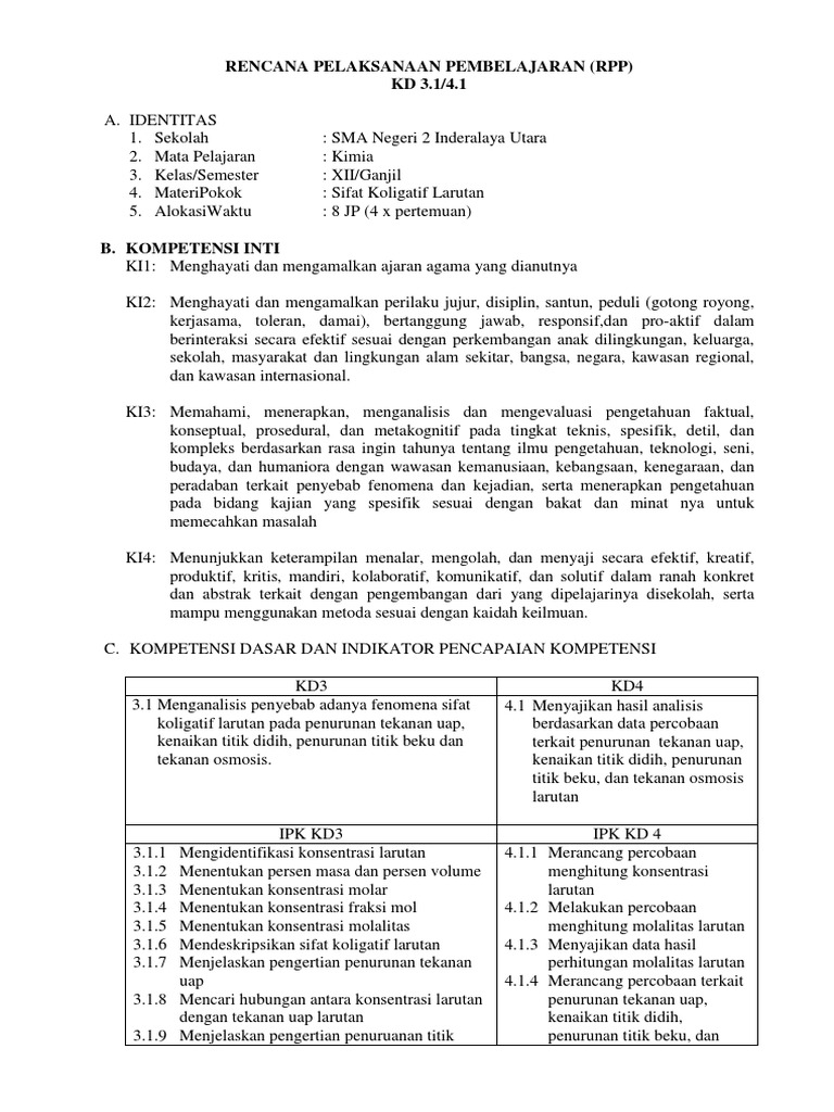 RPP KIMIA K13_KELAS XII .Web viewPenurunan tekanan uap, kenaikan titik didih, penurunan titik beku,