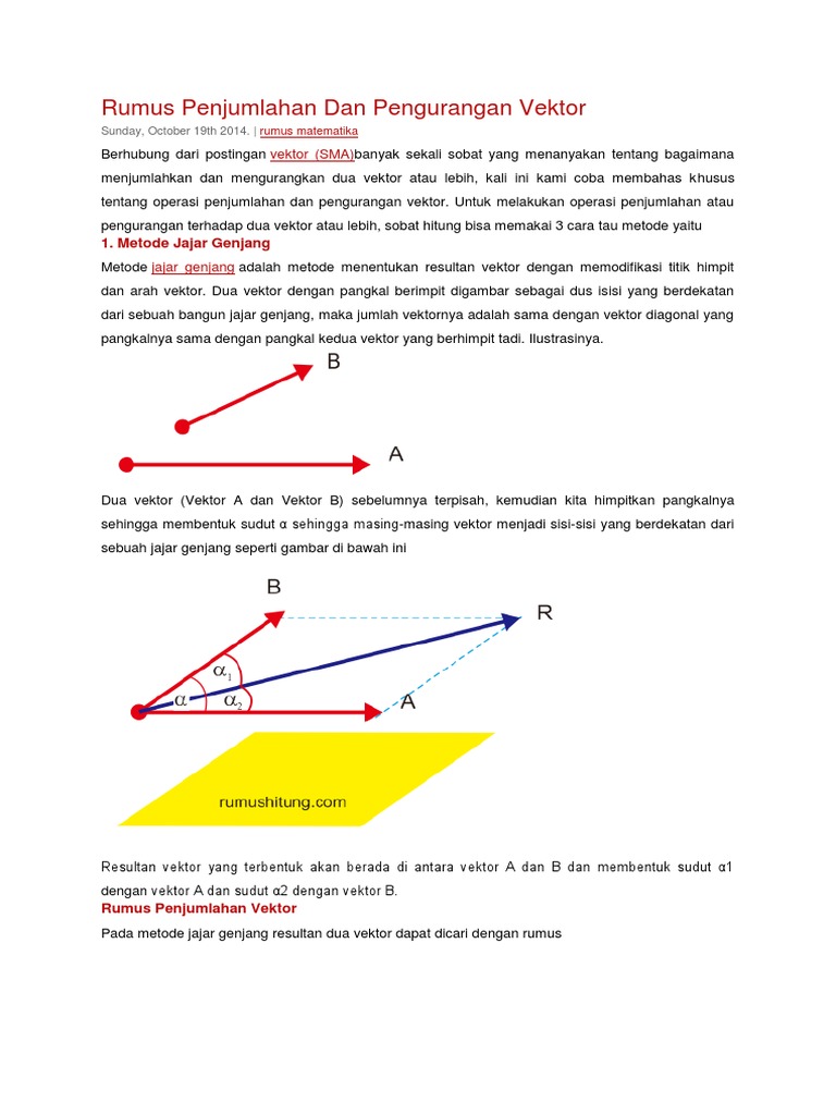 Rumus Penjumlahan Dan Pengurangan Vektorrr raes