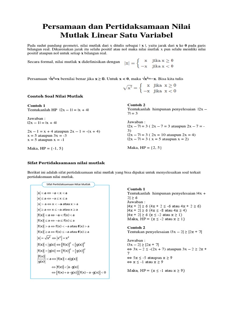 Contoh Soal Persamaan Nilai Mutlak Linear Satu Variabel - Contoh …