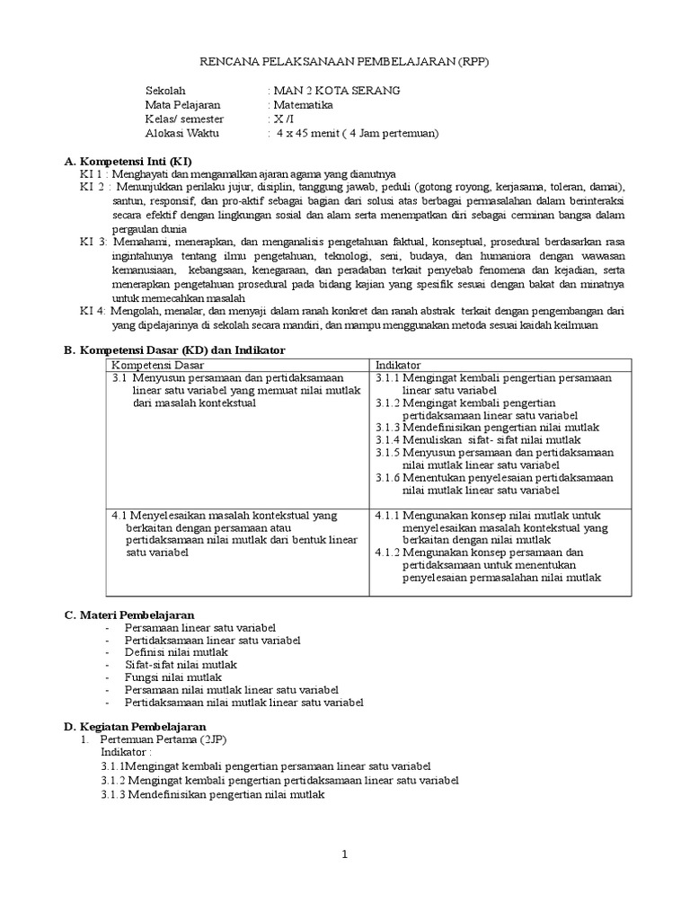 DOC) RPP PERSAMAAN & PERTIDAKSAMAAN NILAI MUTLAK K13 REVISI …