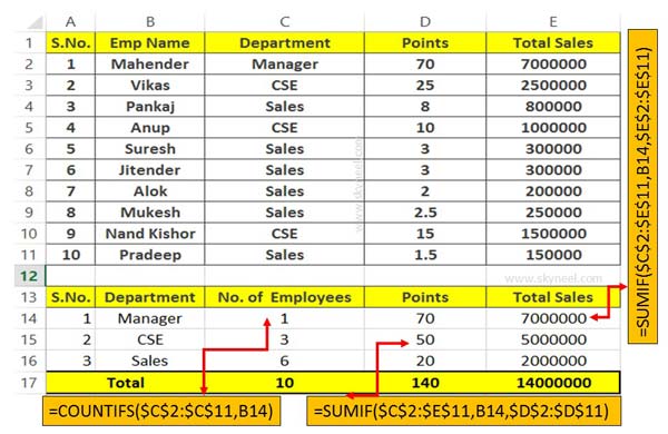 How to use COUNTIFS and SUMIF together in Excel