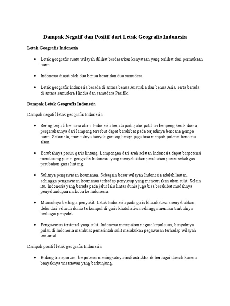 dampak positif dan negatif kondisi geografis indonesia sebagai …