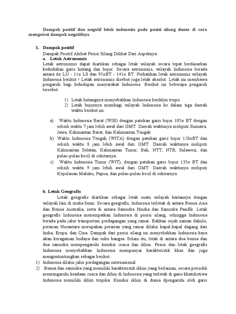 Dampak Positif Dan Negatif Letak Indonesia Pada Posisi Silang Dunia - [DOCX Document]
